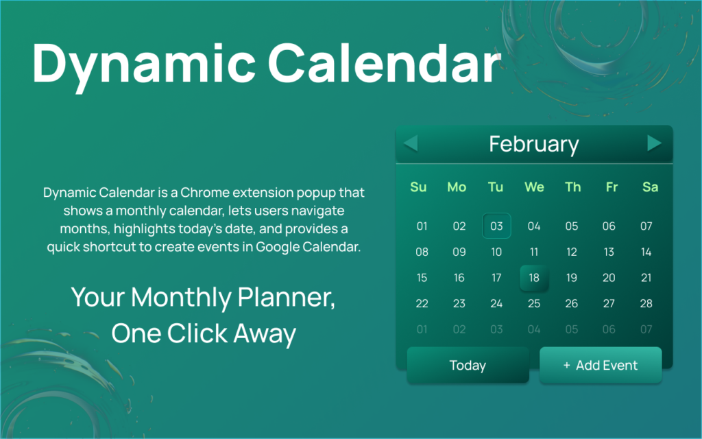 Dynamic Calendar is a simple and fast Chrome extension designed for users who want quick date access without distractions. It runs entirely inside your browser and does not require any account login or special permissions.