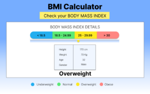 Body Mass Index (BMI) is a simple calculation based on your height and weight. It helps determine whether you are underweight, normal weight, overweight, or obese. It’s a quick way to understand your overall weight category and stay aware of your physical wellbeing.