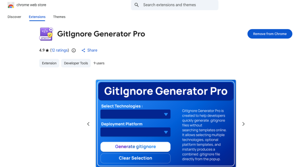 GitIgnore Generator Pro is a smart, privacy-first Chrome extension designed to help developers generate professional, production-ready .gitignore files in seconds. Instead of manually searching for templates or copying outdated configurations, you can now streamline your Git workflow with accuracy and confidence.
