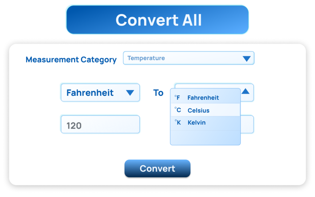 With ConvertAll, users can quickly convert length, volume, weight, temperature, time, percentages, and numbers in one clean interface. The real-time conversion feature ensures results appear immediately as values or units are entered, saving time and making tasks smoother.