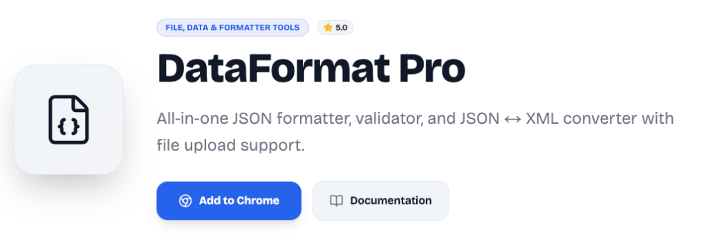 Working with JSON and XML is common for developers, but messy and unformatted data can make debugging and testing difficult. DataFormat Pro by Altftool.com is a professional JSON/XML formatter extension designed to turn unstructured data into clean, readable, and validated code within seconds.