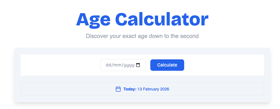 The Age Calculator is built with a modern and visually pleasing design. Soft gradients and a responsive layout make the interface feel clean and welcoming. When the results appear, smooth count-up animations display the age in an engaging way. Instead of numbers abruptly showing on the screen, they transition naturally, creating a polished user experience.