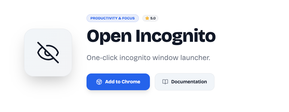 While manual methods work, browser extensions can save time and automate repetitive tasks. Open Incognito Tab is a Chrome extension designed to instantly open your active tab in a new Incognito window, with optional privacy features.