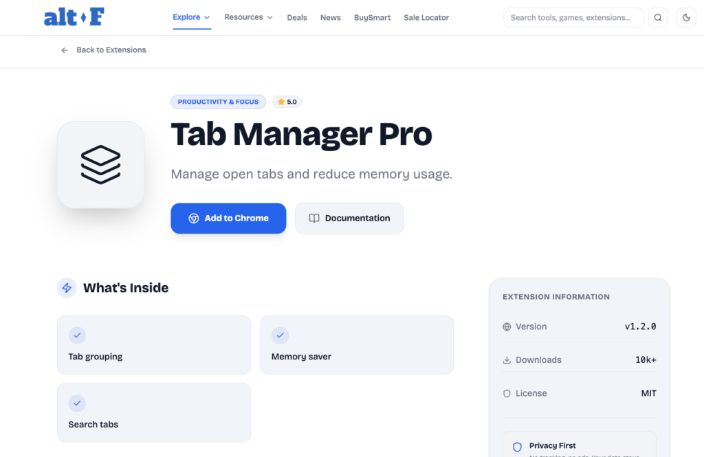 Tab Manager Pro provides a complete set of tools to find, filter, group, sort, suspend, and close tabs quickly. Instead of manually scanning through a crowded tab bar, users can open a clean popup interface that instantly displays all active tabs in one structured view. From there, managing tabs becomes intentional rather than reactive. The extension transforms tab management from a daily frustration into a streamlined process.