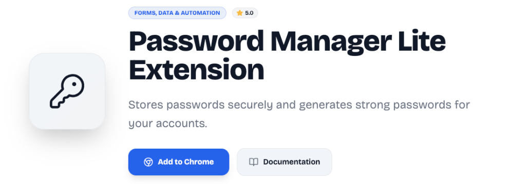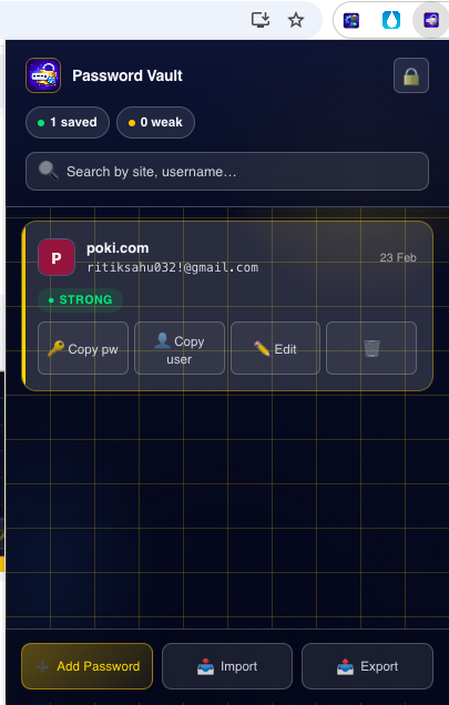 That’s when I started using Password Manager Lite, and the difference was immediate. It felt clean, focused, and refreshingly simple. No unnecessary dashboards. No external accounts. Just a secure vault inside my browser that works exactly the way it should.